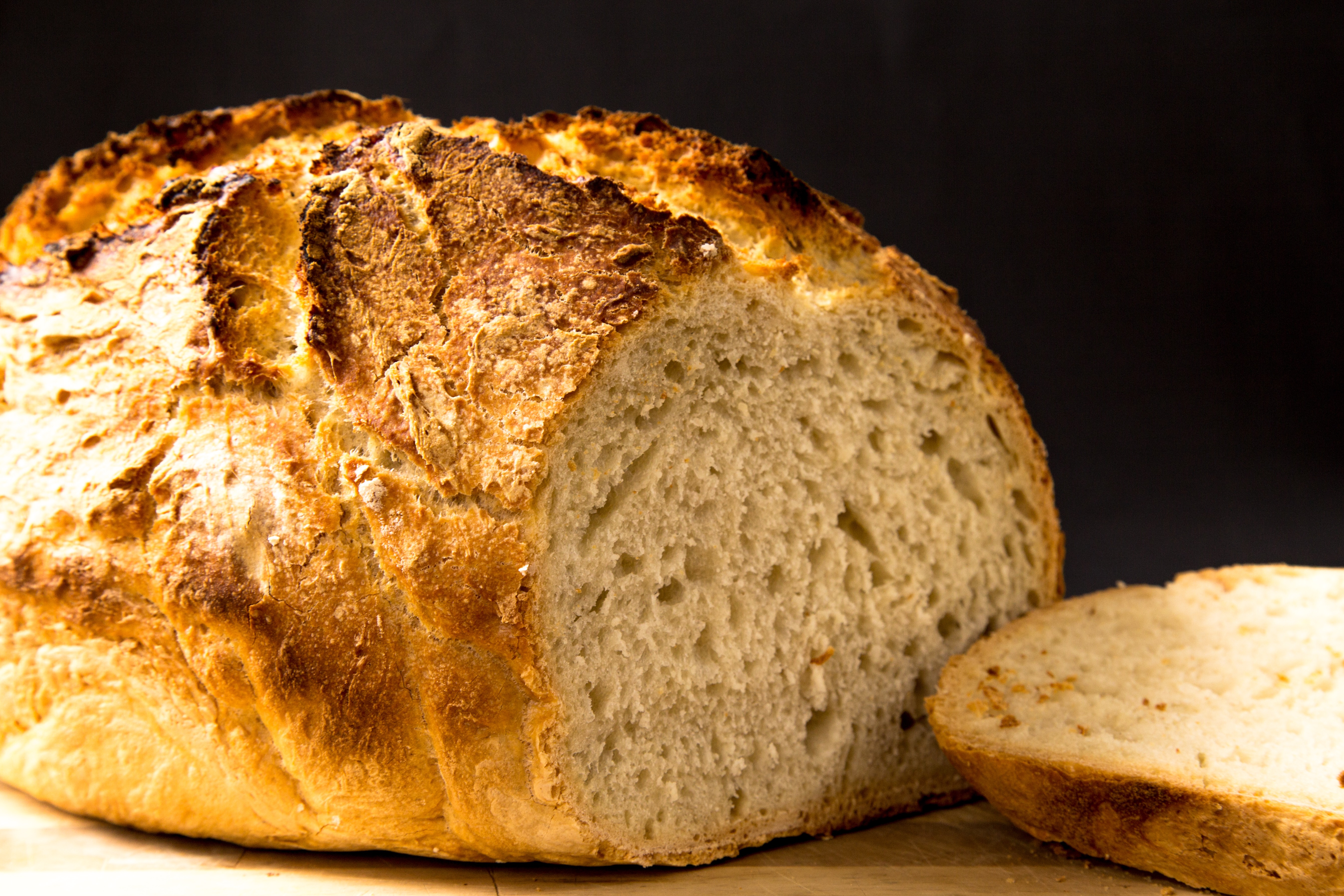 Ungefähr 24 Stunden, bevor man es essen möchte muss man beginnen. Als erstes werden in einer großen Schüssel alle trockenen Zutaten gemischt, dann das Wasser untergerührt. Kneten ist nicht erforderlich. Die Schüssel abdecken und für die nächsten 20 Stunden nicht beachten. So genau muss man es mit der Zeit nicht nehmen, es sollten aber mindestens zwölf Stunden sein. Also ca. vier Stunden vor dem Verzehr geht es weiter. Der Teig müsste jetzt eine recht zähflüssige, Blasen schlagende Masse sein. Diese wird mit einem Teigschaber vom Schüsselrand zur Mitte eingeschlagen. Sollte es zu stark kleben, etwas Mehl benutzen. Jetzt wieder eine Stunde warten. Dann einen gusseisernen Bräter mitsamt Deckel in den Backofen stellen und auf 250 °C ca. eine halbe Stunde vorheizen. Es muss nahezu glühen. Jetzt den Bräter kurz aus dem Ofen nehmen, den Teig, so wie er ist, hineinbefördern. Fett wird nicht benötigt. Den Deckel schließen und alles wieder in den Ofen stellen. Nach 30 Minuten den Deckel abnehmen und noch 15 Minuten weiter backen. Kurz abkühlen lassen, das Brot aus dem Bräter stürzen und eine Stunde auskühlen lassen. Fertig.