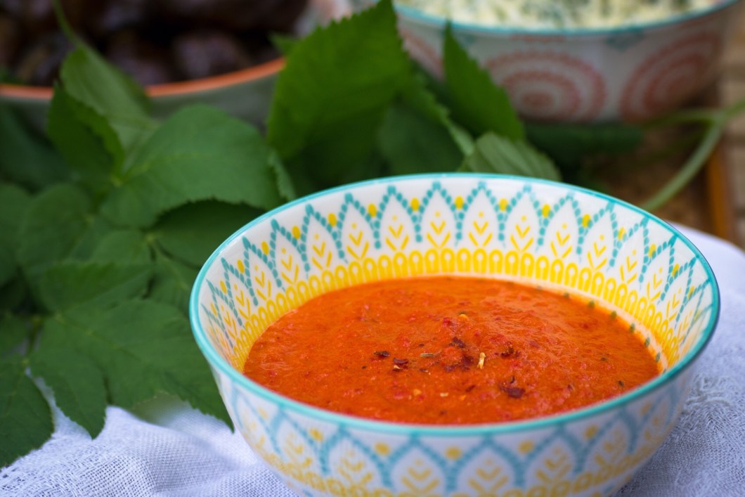 Mojo heißt eigentlich nur Soße. Wir nennen diese Soße allerdings nur Mojo. Es ist eine leckere Grillbeilage aus Paprika. Sie schmeckt auch zu Pellkartoffeln gut. Man benötigt dazu etwa ein Kilogramm rote Paprikaschoten. Die werden gewaschen und vom Stiel befreit. Dann grob geschnitten, die Kerne können drin bleiben. Man gibt sie mit einer Zwiebel, ebenfalls geputzt und grob geschnitten und einer Peperoni, die auf die gleiche Weise vorbereitet wurde auf ein Backblech. Das Ganze wird mit einem ordentliche Schuss Olivenöl vermischt, mit etwas Pfeffer und Salz bestreut und 20 Minuten bei 180 Grad gebacken. Nach der Hälfte der Zeit einmal umrühren. Danach alles in einen Mixer geben, vier frische Knoblauchzehen dazu und kräftig durchmixen. Mit Salz, Pfeffer, Olivenöl und Balsamico oder Zitronensaft abschmecken. Ein Teelöffel Zucker kann auch nicht schaden. Das ganze abkühlen und ein paar Stunden durchziehen lassen. Am nächsten Tag schmeckt das Mojo noch besser.