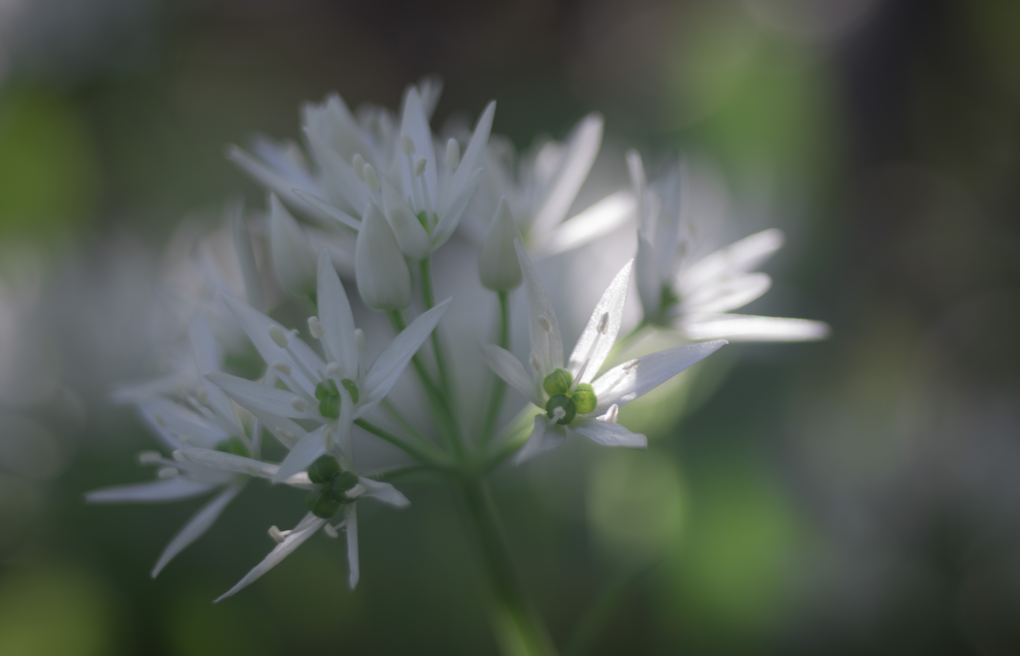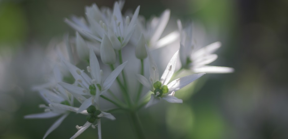 Vor vielen Jahren war der Bärlauch in unserer Region nahezu unbekannt und nicht sehr verbreitet. Ich las in einer Gartenzeitschrift über ihn. Schon die alten Germanen sollen ihn verwendet haben. Vielfältige gesundheitliche Wirkungen werden im nachgesagt. Vor allem aber hat er ein vorzügliches Aroma. Das faszinierte mich sehr und so habe ich ihn bei uns im Garten angesiedelt. Dort hat er sich inzwischen sehr verbreitet und versorgt uns Jahr für Jahr mit seinen würzigen Blättern. Inzwischen ist auch hier sein Bekanntheitsgrad gestiegen. Man kann ihn im Supermarkt kaufen und das Netz ist voll von Rezepten für Bärlauchpesto und Bärlauchbutter. Ich freue mich jedes Jahr, wenn seine Blattspitzen erscheinen und er neue Flächen für sich beansprucht. Er wuchert unter Bäumen und Hecken, inzwischen auch im Gemüsebeet, sogar im Rasen und auf der anderen Zaunseite beim Nachbarn. Da muss ich auch gar nicht mehr so sparsam ernten. Früher war ich richtig geizig. Ich verwende ihn wie Schnittlauch, einfach aufs Butterbrot gestreut, auch ersetzt er das Basilikum in der Tomatensauce oder die Frühlingszwiebel in asiatischen Gerichten. Die Blüten werden in ein paar Tagen ein spannendes Fotomotiv abgeben und ich werde wieder versuchen, das Sonnenlicht einzufangen, das sich in ihnen verfängt.